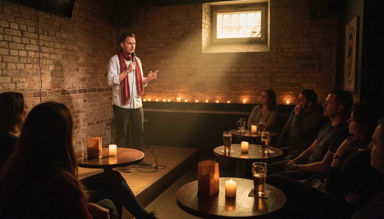 Our mission: create a classy, intimate room where comedy feels personal. Vår mission: skapa en elegant, intim scen där standup känns personlig.