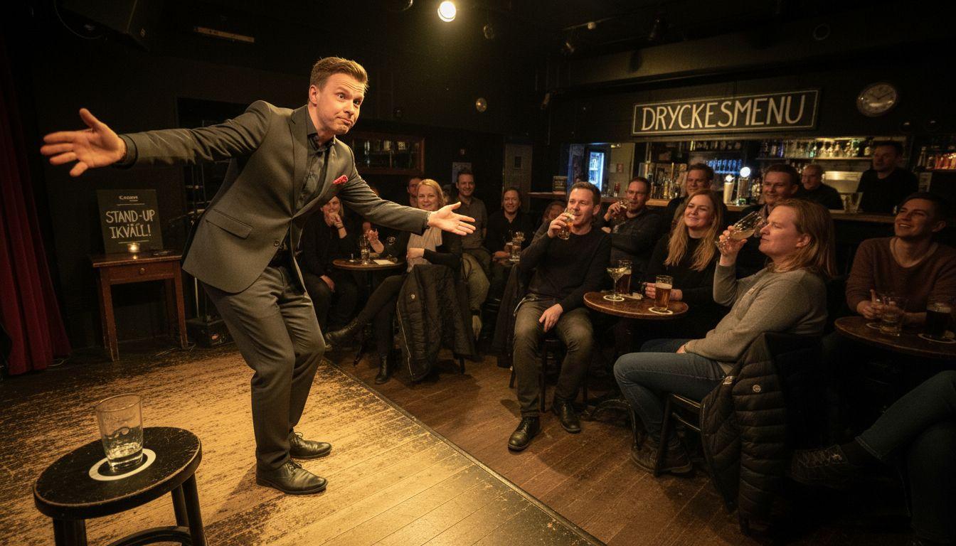 85% av stand-up är förberett material, inte improvisation. Lär dig vad stand-up verkligen är och hur du upplever det bäst på Big Ben Stand Up i Stockholm.